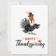Carte de remerciement avec dindon dessiné et chape