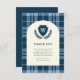 Pour la future maman qui attend un petit garçon. Carte de remerciement pour baby shower avec monogramme à carreaux bleu marine. Remerciez vos invités d'avoir assisté à votre baby shower et pour leurs gentils cadeaux avec un mot de remerciement. Personnalisez avec l'inclusion de votre initiale de monogramme, gardez le texte 'MERCI' au milieu du design tel quel ou modifiez-le et incluez votre propre message de remerciement en bas du design. Fait partie de la collection baby shower Monogramme à carreaux bleu marine. Une collection de baby shower classique, intemporelle et élégante.