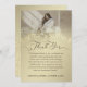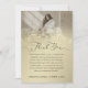 Une élégante carte de remerciement de mariage présentant un design damassé doré avec des détails artistiques raffinés. La couverture affiche un en-tête chaleureux « Merci » dans un script gracieux, associé à un message sincère de gratitude au Seigneur et aux invités pour leur présence. La carte allie une sophistication intemporelle à un sentiment personnel, ce qui en fait un souvenir parfait pour honorer ceux qui ont partagé la célébration du mariage.