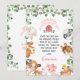 Jolie carte de remerciement d'anniversaire à thème aquarelle représentant divers animaux de ferme, grange rouge, paniers de pique-nique et feuillage d'eucalyptus. Idéal pour une fête d'anniversaire sur le thème de la ferme.