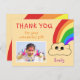 Carte de remerciement d'anniversaire Kawaii pour enfants. Carte de remerciement d'anniversaire pour enfants avec photo, nom et note de remerciement. Vous pouvez facilement personnaliser la carte avec votre photo et nom préférés. Vous pouvez également modifier le texte. Cette jolie carte de remerciement a un nuage kawaii avec un arc-en-ciel de différentes couleurs sur fond jaune. Les enfants adoreront cette carte mignonne.