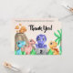 C'est une carte de remerciement d'anniversaire sur le thème des dinosaures pour la fête d'anniversaire d'un petit garçon. L'illustration se compose de 4 bébés dinosaures adorables avec un volcan à l'arrière-plan et quelques feuillages. La carte peut être personnalisée avec vos propres détails.