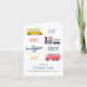 Une carte de remerciement de fête d'anniversaire pour enfant avec un avion, un train, un bus scolaire, un camion de pompiers.