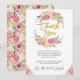 Carte de remerciement de baby shower écriture florale rose et or chic