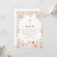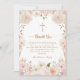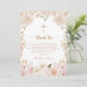 Carte de remerciement de baptême floral bohème rose élégant. Un cadre floral bohème rose aquarelle moderne avec une croix. Célébrez cette occasion joyeuse avec notre carte de remerciement personnalisée qui donnera le ton pour une réunion mémorable et significative.
