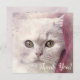 Texte personnalisable sur le devant et le dos, chat blanc sur crème de fraise.