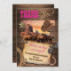 Cette carte de remerciement unique présente de vrais chevaux courant devant le désert avec un fond en bois. Personnalisez avec vos détails sur un papier de style ancien.