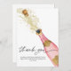 Exprimez votre gratitude avec notre carte de remerciement de fiançailles bulles rose ! Avec une bouteille de champagne rose et or chic, cette carte est parfaite pour remercier vos invités avec style. Personnalisez-la avec votre message sincère pour rendre chaque remerciement vraiment spécial. Articles assortis dans notre magasin Cava Party Design.