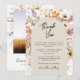 Prêt à célébrer dans le style ? Notre carte de remerciement de fin d'études boho wildflower éclate de charme floral. Elle présente un design floral aquarelle, 1 photo au dos et une typographie moderne. Personnalisez en ajoutant votre photo, nom, école et autres détails. Trouvez des invitations assorties dans ma boutique. Photos par prostooleh / Freepik.