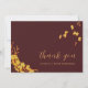 La carte de remerciement Luxury Dark Burgundy & Gold Flowers a un fond bordeaux foncé orné d'un motif floral doré complexe et d'une typographie moderne. La combinaison du bordeaux riche et de l'or scintillant crée une esthétique élégante et luxueuse.