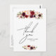 Une belle carte postale pour envoyer des messages de remerciement à vos invités de mariage. Elle présente des fleurs aquarelles rouges burgundy et roses. Vous pouvez modifier le texte et les couleurs.