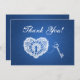 Conception élégante de carte de "Remerciements" de mariage avec un motif romantique bleu "Clé de mon cœur", texte personnalisé avec les noms et la date. Impressionnez votre famille et vos amis avec ce design moderne et élégant. Entièrement personnalisable ! Facile à utiliser et à personnaliser.