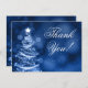 Conception élégante de carte de "remerciement" de mariage "Winter Wonderland" avec motif argent + bleu d'arbre de Noël scintillant, texte de noms et de date personnalisés. Impressionnez votre famille et vos amis avec ce design moderne et élégant. Entièrement personnalisable ! Facile à utiliser et à personnaliser.