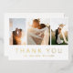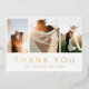 Carte de remerciement de mariage moderne avec un design simple et une police sans serif minimaliste ainsi qu'un collage de photos présentant vos trois photos préférées. Tout le texte au recto est en véritable feuille d'or. Utilisez le modèle pour ajouter votre message personnalisé au verso. Cette carte de remerciement de mariage chic et élégante au design minimaliste permet à vos photos d'être le point central.