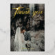 Carte de remerciement de mariage en feuille d'or. Cette carte de remerciement de mariage en feuille d'or présente une écriture calligraphique avec Personnalisez avec vos noms et date de mariage.
