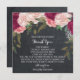 Une belle carte de remerciement florale aquarelle bordeaux et rose blush à offrir à vos invités de mariage à la réception. Effet tableau noir en arrière-plan. Facile à éditer ou à supprimer les champs de texte pour répondre à vos besoins personnels. Parfait pour les mariages à tout moment de l'année ! Papeterie et enseignes de mariage assorties disponibles dans ma boutique. Certains graphiques utilisés proviennent de TwigsAndTwineArt.com