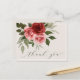 Cette carte de remerciement de mariage au design vintage s'inspire de roses en aquarelle dans des tons de rouge et de rose, associées à un feuillage vert atténué. La palette de couleurs neutres et douces convient aux mariages de toutes les saisons, en particulier pour les mariages d'automne. Idéal pour les couples qui recherchent un design intemporel, romantique et élégant pour exprimer leur gratitude.