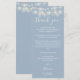 Une élégante carte de remerciement de réception de mariage bleu poussiéreux avec de jolies guirlandes lumineuses. Personnalisée avec votre message de remerciement spécial dans une typographie élégante. Un souvenir spécial de remerciement pour vos invités. Conçue par Thisisnotme