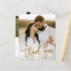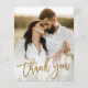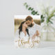 Cette carte de remerciement de mariage photo moderne comporte un merci écrit en or, un message personnel et une photo verticale sur le devant. Le verso comprend une deuxième photo qui est une photo horizontale à fond perdu. Cliquez sur modifier pour personnaliser ce design.