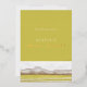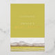 Carte de remerciement de mariage Fête de mariage avec paysage de montagne champêtre. Douceur Paysage naturel prairies printanières verdoyantes en fleurs. Silhouettes de montagnes rocheuses brunes, champ d'herbe et fleurs de pissenlit blanches. Fond de peinture aquarelle Carte de remerciement de mariage. Collection Prairies en fleurs.