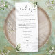 Une élégante carte de remerciement de réception de mariage avec une célébration florale de verdure. Personnalisée avec votre message spécial de remerciement dans une typographie élégante. Un souvenir spécial de remerciement pour vos invités. Conçu par Thisisnotme©