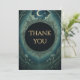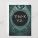 Envoyez votre gratitude avec une élégance gothique. Cette carte de remerciement Mascarade au clair de lune présente des tons noirs foncés, du texte doré et des détails célestes — parfaite pour les fêtes d'Halloween et les événements au clair de lune.