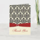 Carte de remerciement en damas rouge, ivoire et no