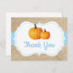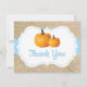 Carte de remerciement en toile de jute bleue avec citrouille d'automne. Pour une personnalisation plus poussée, veuillez cliquer sur le bouton "Personnaliser" et utiliser notre outil de conception pour modifier ce modèle.