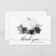 Carte de remerciement Florale Citrouille Bleu Marine Automne. Cette carte de remerciement florale est parfaite pour les mariages d'automne, les baby showers, les douches de mariée et bien plus encore.