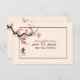 Une carte de remerciement de mariage sakura élégante et coordonnée. La carte présente un dessin à l'encre d'une branche de cerisier en fleurs avec une écriture japonaise et le mot "Love". (FP)