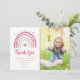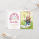 Carte de remerciement moderne pour anniversaire avec arc-en-ciel dans des nuances de teal, de rose et un effet de dorure à l'or faux, avec un espace pour votre photo.