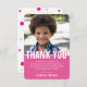 Remerciez vos amis et votre famille d'avoir rendu l'anniversaire de votre enfant si spécial avec ces cartes de remerciement pour anniversaire modernes. Avec le texte 'MERCI' en blanc gras ombré, une photo de l'enfant qui fête son anniversaire, et un message de remerciement qui peut être facilement personnalisé.