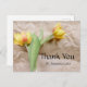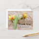 La carte est tenue dans un style de fleurs en jaune, vert. Tulipes jaunes sur papier marron.