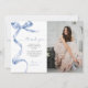 Exprimez votre gratitude avec style grâce à cette élégante carte de remerciement avec un nœud moderne bleu et un espace pour une photo personnelle. Parfaite pour les anniversaires, les douches de mariée ou toute occasion spéciale, ce design dégage une sophistication intemporelle. Personnalisez-la avec votre message sincère et vos coordonnées pour créer un souvenir inoubliable pour vos destinataires.