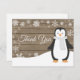 Carte de remerciement rustique Pingouin Flocon de Neige Hiver. Pingouin. Fond en bois rustique. Grange rétro vintage de campagne. Flocon de neige blanc. Amour et remerciements, police de caractères script belle. Ajoutez votre message au verso ou laissez-le vide et écrivez à la main. Pour une personnalisation plus poussée, veuillez cliquer sur le bouton "Personnaliser" et utiliser notre outil de conception pour modifier ce modèle.