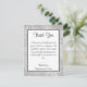 Ces adorables cartes de remerciement plates 4x5 sont parfaites pour remercier vos invités des cadeaux qu'ils ont apportés, ou simplement pour leur compagnie lors de votre événement. Parfait pour un mariage ou une fête de fiançailles ! Celles-ci sont entièrement personnalisables et le poème peut être complètement supprimé en supprimant simplement le texte pour laisser place à un message personnel manuscrit, ou vous pouvez personnaliser avec votre propre poème ou texte. Celles-ci sont imprimées sur du papier lisse, vibrant, mat de 110 lb de grammage. Contient 50% de contenu recyclé. Parfait pour vos invitations les plus formelles, cartes de remerciement et annonces d'événement. Celles-ci sont livrées avec des enveloppes blanches standard.
