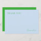 Dites 'Merci' avec style ! Pratique pour le bureau à domicile, gardez-les à portée de main pour quand vous devez montrer votre appréciation. La carte est bleu poudre et comporte une personnalisation verte. Le dos est vert vif pour un contraste élégant. Personnalisez avec le texte que vous souhaitez en mettant à jour le modèle convivial.