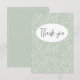 Motif de feuille abstraite aquarelle vert sauge et fond coordonné avec « Merci » en typographie moderne.