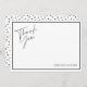Le dos présente un motif de points noirs. Le devant présente une police de style manuscrit avec le mot 'merci' et le nom de votre choix en bas de la carte qui peut être personnalisé avec le texte que vous souhaitez.