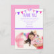 Cette jolie carte de remerciement pour enfants sur le thème rose et violet est un excellent moyen de montrer votre appréciation aux invités qui ont assisté à leur fête d'anniversaire. La carte présente une guirlande sur le thème rose et violet, avec un texte qui dit "MERCI", un message de remerciement modèle, de qui cela vient et juste votre photo préférée de leur fête ! Le verso est coloré en rose et le texte et l'image peuvent être facilement personnalisés.