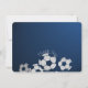 Carte de remerciement plate à thème sportif bleu foncé, blanc et argenté. Carte de remerciement multi-ballons de football avec des ballons de football en argent.
