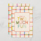 Envoyez des remerciements chaleureux après la fête de votre petit avec cette carte de remerciement pour 2e anniversaire "Trop de fun". Avec sa bordure colorée à carreaux pastel et sa typographie ludique, ce design est parfait pour un thème de fête neutre ou coloré. Personnalisez avec le nom de votre enfant et votre message pour créer un souvenir mémorable pour vos amis et votre famille. Une touche finale charmante pour une célébration de 2e anniversaire "Trop de fun".