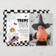 Célébrez l'anniversaire d'Halloween de votre petit garçon avec cette amusante carte de remerciement rétro représentant un fantôme cool faisant du skateboard. Parfait pour envoyer des remerciements sincères après une fête effrayante et stylée !