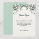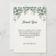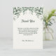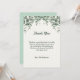 Carte de remerciement pour baby shower aux feuilles d'eucalyptus vert. Le message remercie les invités d'être venus à la fête.