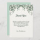 Carte de remerciement pour baby shower avec feuilles d'eucalyptus vertes. Le message remercie les invités d'être venus à la fête.