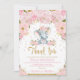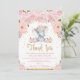 Carte de remerciement pour Baby Shower Fille Éléph