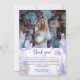 Exprimez votre gratitude avec cette charmante carte de remerciement photo, mettant en vedette le design enchanteur de la petite sirène. Parfaite pour envoyer des remerciements chaleureux à vos invités, cette carte présente une queue de sirène iridescente et un fond sur le thème de la mer, ainsi que de l'espace pour une photo personnelle. Les couleurs pastel douces et les éléments fantaisistes créent une touche magique, ce qui en fait un choix idéal pour un remerciement mémorable et sincère. Que ce soit pour une baby shower ou toute autre occasion spéciale, cette carte de remerciement est sûre de faire une impression durable.