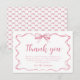 Exprimez votre gratitude avec la carte de remerciement Pink Bow Girl Ribbon Baby Shower, un charmant témoignage de votre appréciation pour l'amour et le soutien que vous et votre bébé avez reçus. Ornée de délicats rubans et d'un doux nœud rose, cette carte irradie de chaleur et de tendresse. Avec des mots sincères écrits à l'intérieur, elle rappelle avec émotion la joyeuse célébration et les précieux souvenirs créés ensemble. Laissez cette carte de remerciement être un témoignage de l'amour et des bénédictions partagés pendant ce moment spécial, alors que vous exprimez votre profonde gratitude à ceux qui l'ont rendu inoubliable.