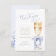 Envoyez vos remerciements sincères avec cette élégante carte de remerciement ornée d'une écriture gracieuse et d'un nœud bleu poussiéreux attaché à un verre à champagne.