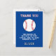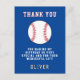 Carte postale de remerciement pour fête d'anniversaire de thème balle de baseball personnalisée avec un nom personnalisé et un mot de remerciement pour vos invités.